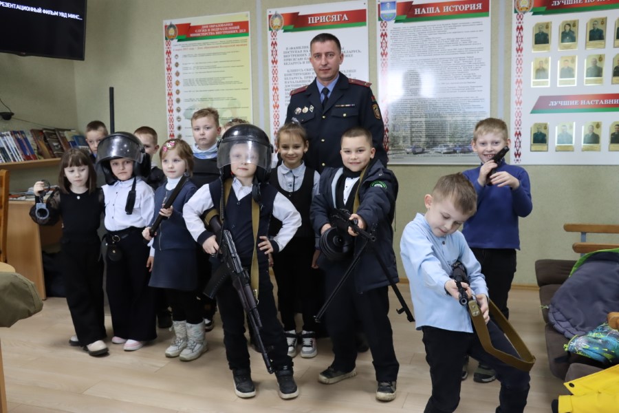 Дети узнали о милицейской службе, посмотрели фильм о жизни милиционеров, подержали в руках настоящее боевое оружие, которым пользуются милиционеры в случае необходимости, побывали в музейном уголке РОВД, постреляли в тире из страйкбольного автомата. В финале программы было посещение отделения Департамента охраны, где детишки познакомились с охранными собаками – овчаркой Джади и маленькой Айвой.