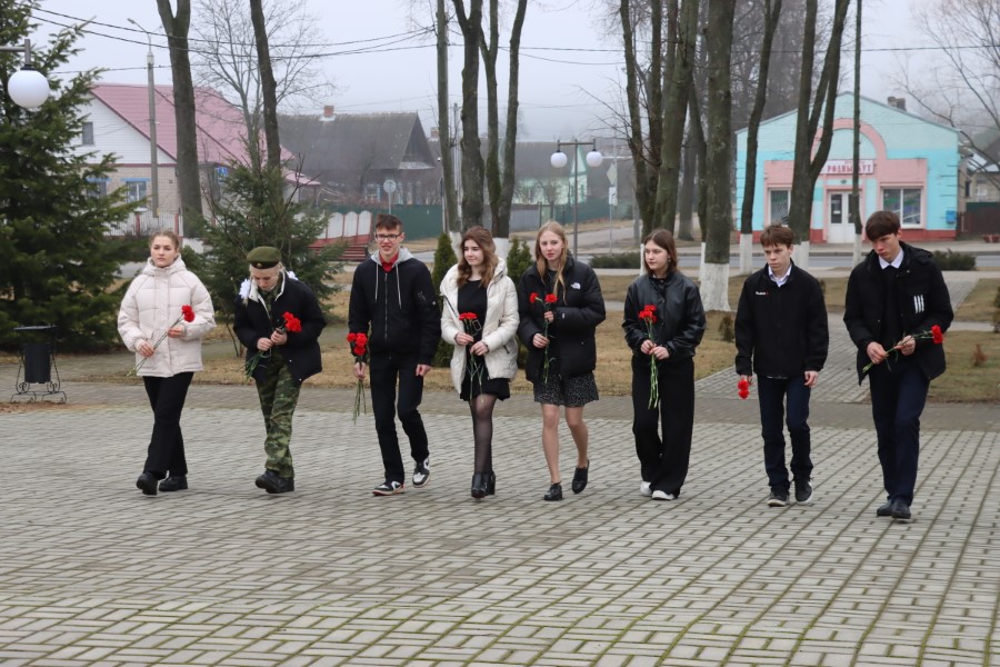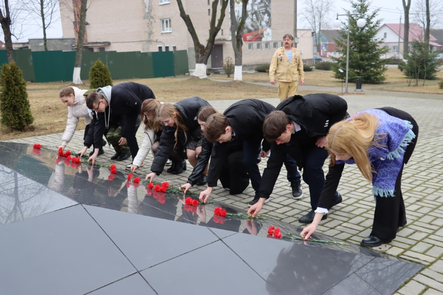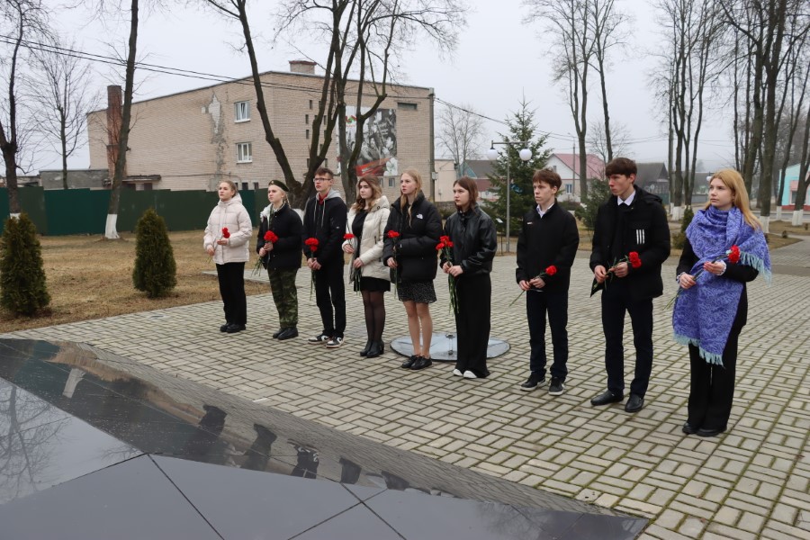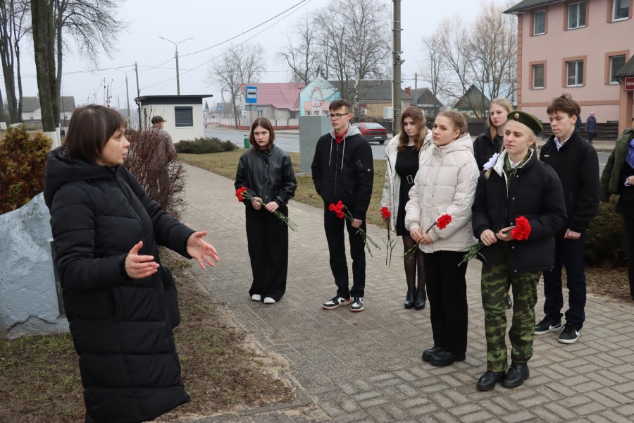 В рамках конкурса ученики городских и районных школ в городском сквере возложили цветы к памятнику погибшим во время Великой Отечественной войны. Учительница средней школы №2 Елена Жданович провела для участников мероприятия экскурсию по скверу и рассказала о фактах из истории подпольного движения в Березино в годы военного лихолетья и борьбы с фашистскими захватчиками.