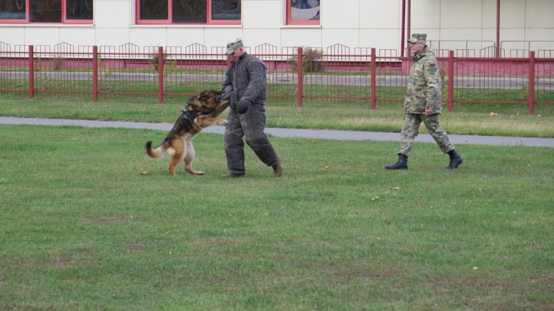 Затем на стадионе гимназии школьники могли подержать разные виды оружия. А на показательном выступлении немецкая овчарка Плут выполнила задержание нарушителя.