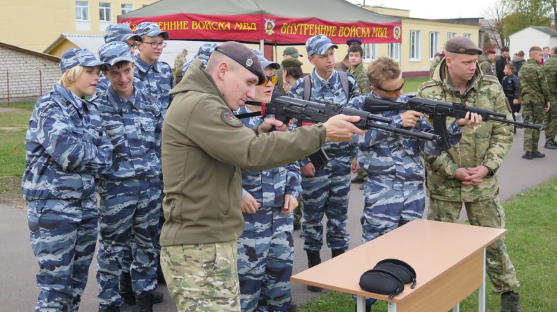 В начале, ребятам показали тематические видео о внутренних войсках и их роли в системе защиты мира Беларуси, об их сотрудничестве с другими родами вооруженных сил. Подготовка курсантов строится на опыте милицейского и армейского спецназа, практическом полевом опыте. Выпускник факультета должен владеть многими видами стрелкового оружия, иметь прекрасную физическую форму и специальную тактическую подготовку в условиях города и пересеченной местности.