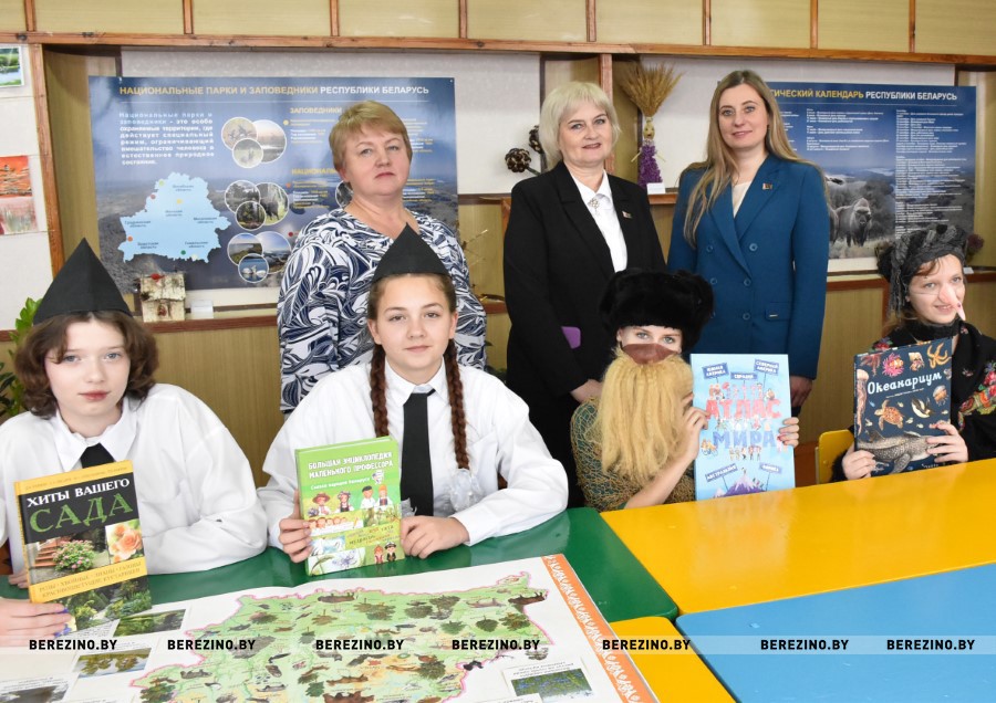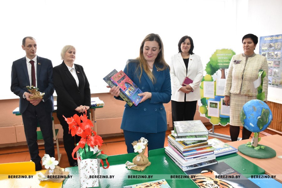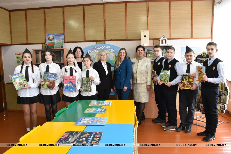 Председатель Минского областного комитета природных ресурсов и охраны окружающей среды Екатерина Полещук преподнесла в дар детям множество книг о природе и экологии.