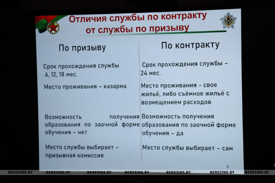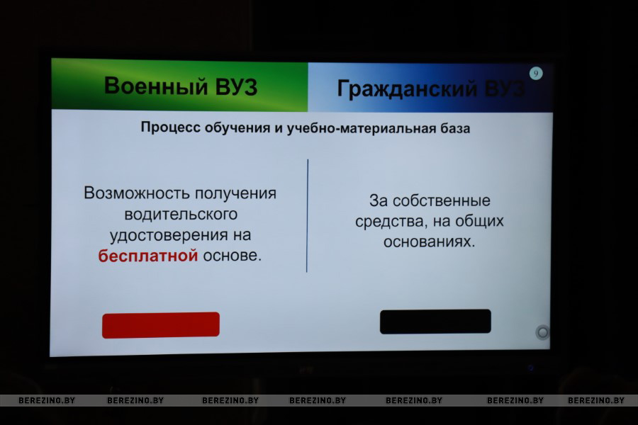 Выступающие рассказали в подробностях о военных учебных заведениях Республики Беларусь, и военных учебных заведениях Российской Федерации, в которых также обучаются курсанты в интересах нашей страны, а также о социальных гарантиях, условиях обучения, денежном довольствии. Напомнили, что у каждого гражданина Беларуси есть конституционный долг защищать свою Родину.