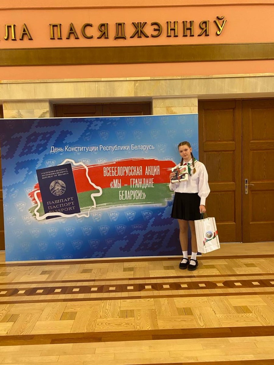 Председатель Палаты Представителей Игорь Сергеенко и член Совета Республики, первый секретарь ЦК БРСМ Александр Лукьянов вручили талантливым учащимся нашей страны самый важный документ гражданина РБ - паспорт. В их числе была учащаяся 8 "А" класса ГУО "Средняя школа №2 г.Березино" НЕКРАСОВА ДАРЬЯ. Поздравляем!