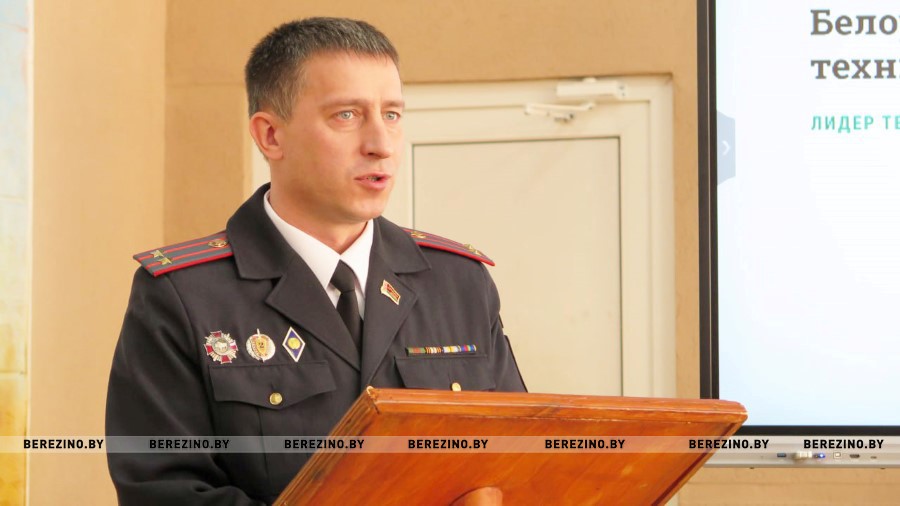 С Днем Конституции Беларуси поздравил присутствующих заместитель начальника по идеологической работе и кадровому обеспечению Геннадий Рабиза. А также пригласил выпускников поступать в профильные учебные заведения МВД. Он рассказал о существенных выгодах службы в силовых структурах и об определенной специфике. А поэтому уделил внимание наличию высоких моральных качеств.
