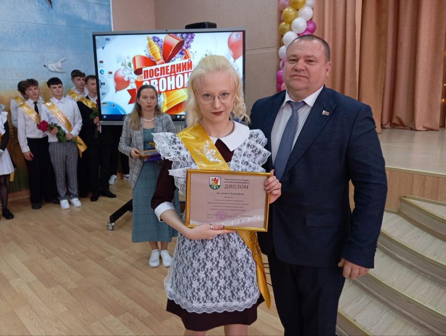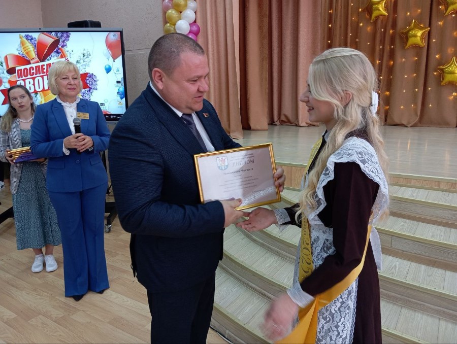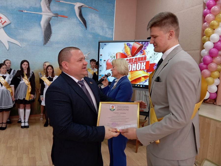 - Дорогие выпускники, уважаемые родители, педагоги, гости! Дорогие ребята, сегодня завершается первый важный этап вашей жизни. Для вас прозвенел последний школьный звонок. Впереди экзамены, дорога к новым вершинам и желание идти вперед. Позади детство, школьные годы, наполненные не только учебными заботами, но и проблемами, а также радостью познания мира, обретения друзей, первых победы. Уверен, что в памяти вас навсегда останутся теплые и радостные воспоминания о школьных друзьях, дорога знаний, которую вы шли все эти годы, приведет к новым удивительным открытиям. А ваши энергия и талант послужат на благо Березинского района! – сказал Олег Иванович. – Каким бы не были школьные годы трудными или полными радости, выпускной бал всегда наполнен каким-то особенным смыслом. Поэтому он должен остаться в памяти добрым и светлым воспоминанием: как самый лучший и торжественный день в школьной жизни, как праздник дружбы и верности, красоты, и юности. Желаю вам крепкого здоровья, хорошего настроения и успехов во всех начинаниях! Поздравляю вас с этим праздником! От души больших вам успехов, ребята!