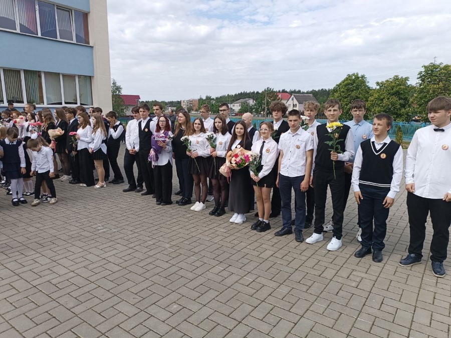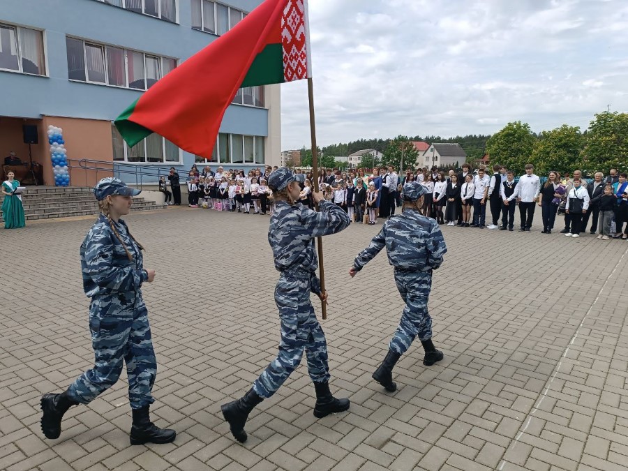 В начале мероприятия члены ВПК «Беркут» вынесли государственный флаг Беларуси. Учеников поздравила директор школы Алла Дудко. Она обозначила, что впереди выпускников ждут экзамены, а главное жизненный выбор, который определит траекторию всего их будущего. Директор пожелала всем ученикам удачи, хорошего настроения и смелости.