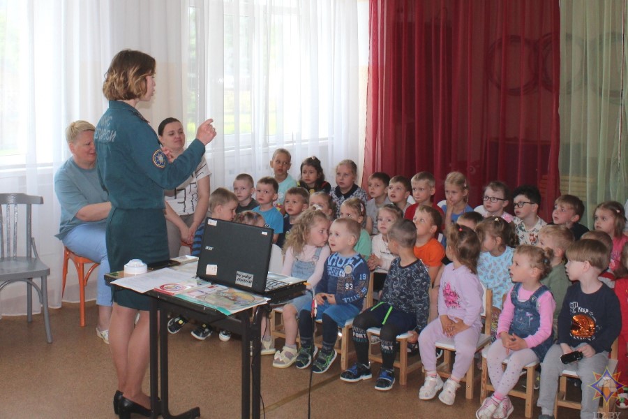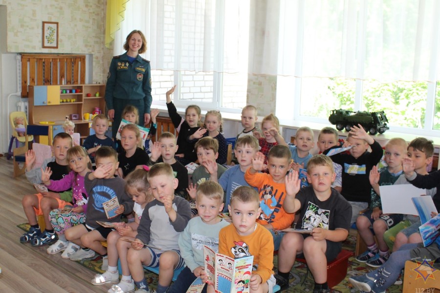 Разам з інспектарам прапаганды Бярэзінскага райаддзела па надзвычайных сітуацыях Вольгай Ермаковай дзеці крочылі па сцяжынках краіны бяспекі: расказвалі пра прычыны пажараў, адгадвалі загадкі, удзельнічалі ў рухомых гульнях, тэлефанавалі ў службу ратавання, расказвалі пра небяспечныя прадметы ў доме. Варта сказаць, што нашы дзеткі – самая ўдзячная публіка! Бачыць, як з шырока адчыненымі вочкамі яны ловяць кожнае слова, – гэта бясцэнна! На памяць пра сустрэчу з інспектарам усе дзеткі атрымалі карысныя падарункі.