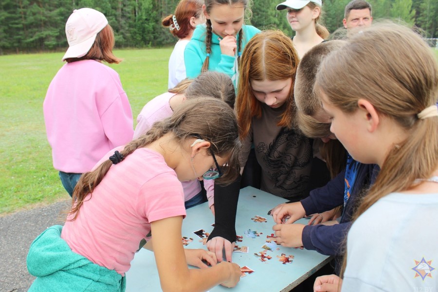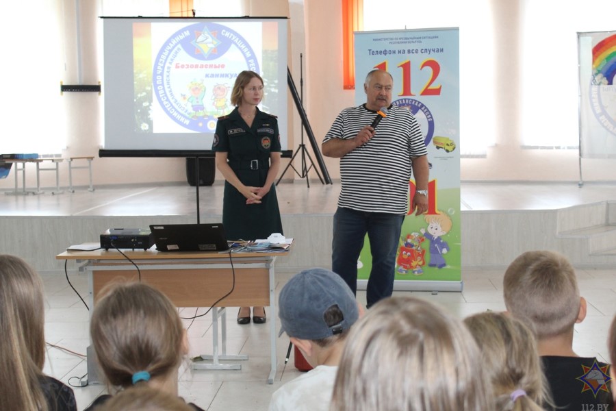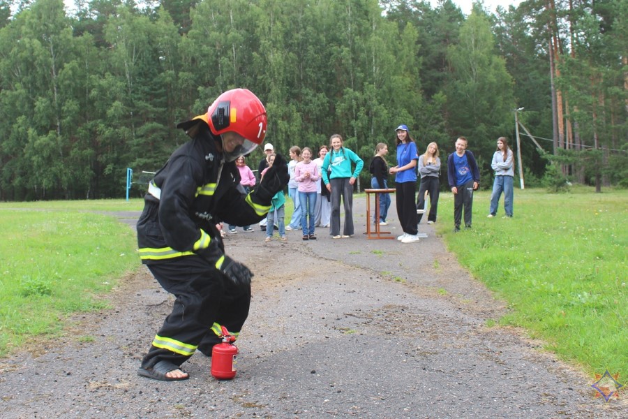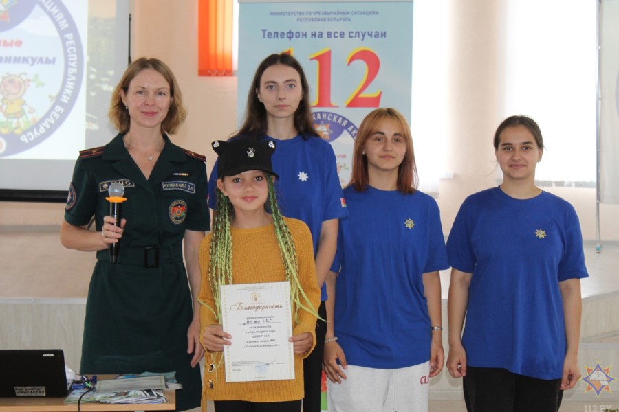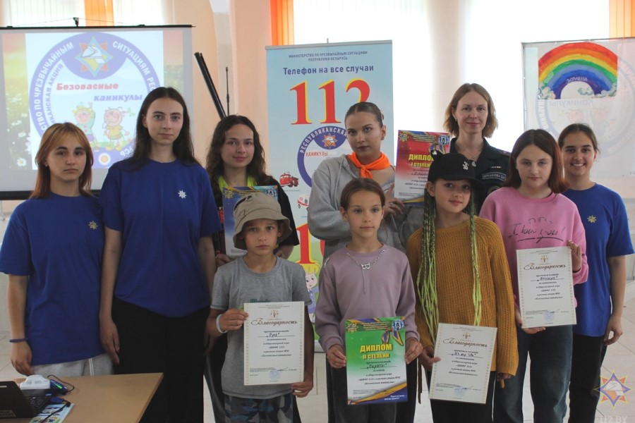 Работники ОСВОД организовали целую площадку безопасности, где учили детей бросать круг тонущему, делать правильный захват человека в воде, рассказывали ребятам о принципах сердечно-легочной реанимации. Абсолютно все отряды прекрасно показали себя в игре, все получили дипломы и благодарности. А пока организаторы акции подводили итоги, ребята посмотрели фильм «Энциклопедия безопасности». Активисты районного отделения Белорусской молодежной общественной организации спасателей-пожарных провели викторину и вручили самым младшим отдыхающим лагеря полезные буклеты, блокноты и раскраски.