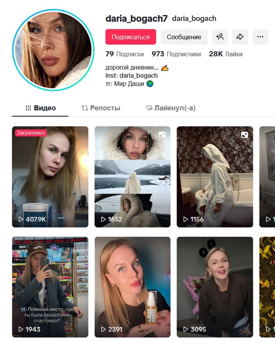Дарья ведёт блог в Инстаграме и снимает тиктоки. По словам девушки, это позволяет отвлечься от рутины. Тематическая направленность разнообразная. Было несколько видео о том, чем занимаются учителя на каникулах, немного о любимой работе, а также хобби, макияж, распаковки из магазинов. Людям интересно смотреть всё. На одном аккаунте ТикТока значится 1700 подписчиков, на втором 950. Самоцель в данном случае – не взвинтить до максимума общее количество подписчиков, а просто отдохнуть и развлечься, достичь творческого самовыражения. В числе подписчиков красивой молодой учительницы встречаются коллеги и ученики. И наверняка ученикам Дарьи Андреевны смотреть её тиктоки особенно интересно, ведь они понимают, что их «химичка» не из каких-то запредельных пространств и высот, а, как оказывается, обычный человек, как они, только взрослее. И как отмечает сама Дарья, это важно в плане педагогики.