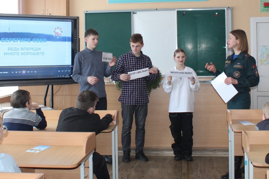 З чарговымі візітамі бяспекі інспектар Бярэзінскага райаддзела па надзвычайных сітуацыях Вольга Ермакова наведала школьнікаў устаноў адукацыі аграгарадкоў Паплавы, Пагост, Багушэвічы, Капланцы. Не засталіся без увагі і старшакласнікі ДУА «Бярэзінская гімназія». Якія прычыны пажараў, што рабіць пры задымленні ў доме, як карыстацца вогнетушыцелем і тэлефанаваць у службу выратавання – шматлікія важныя рэчы абмяркоўвалі дзеці разам з інспектарам. Не абышлі бокам і тэму бяспекі на вадаёме: дзецям нагадалі аб небяспецы зімовага вадаёма і спосабах самавыратавання, паказалі фільм, параілі не выходзіць без дарослых не лёд і імкнуцца заўсёды прадугледжваць свае дзеянні.