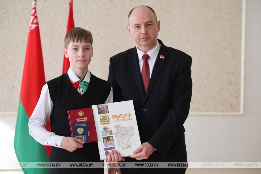 Поздравляя молодых людей с важным событием и вручая им паспорта, председатель Минского облисполкома Алексей Кушнаренко отметил, что этот документ прежде всего символизирует принадлежность к нашему государству, к его богатым традициям.