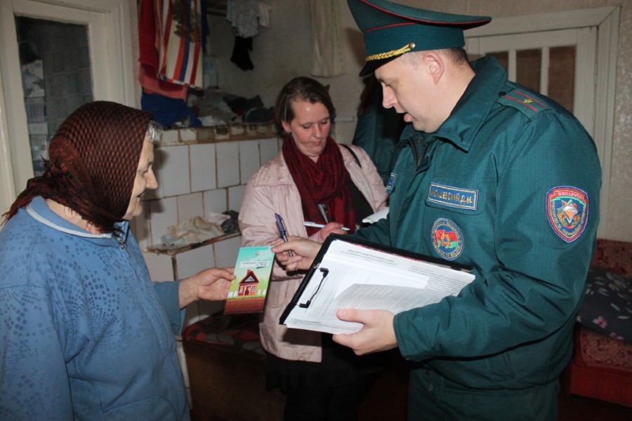 У доме гаспадыні чыста і ўтульна. Вось толькі печка патрабуе рамонту, на што і ўказвае супрацоўнік РАНС.