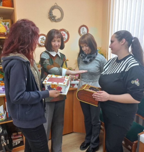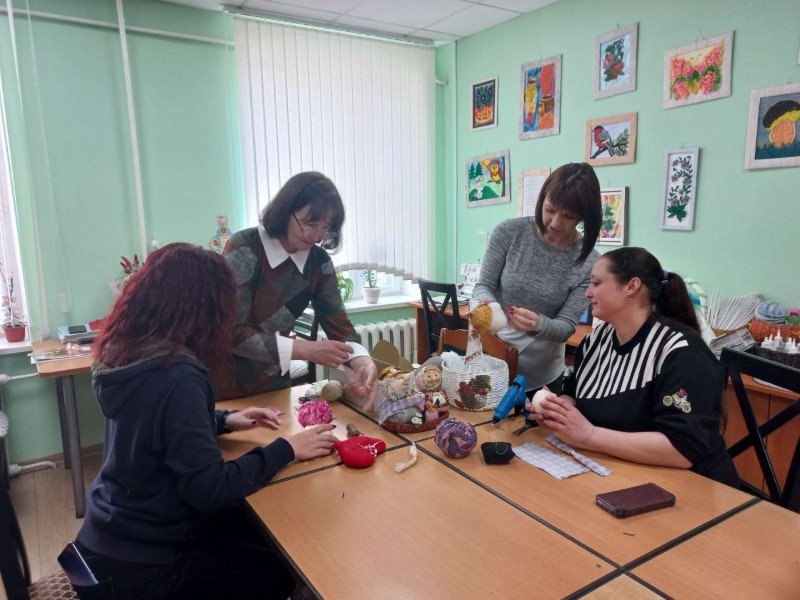 Инструктор по трудовой терапии Жданович Татьяна Владимировна подробно рассказала и показала все этапы изготовления текстильной куклы, а специалисты отделения поделились опытом работы по организации досуговой деятельности людей с инвалидностью. Приняв участие в мастер-классе, гости смогли своими руками изготовить сувенирные изделия.