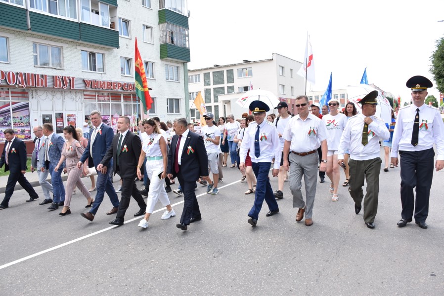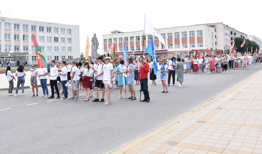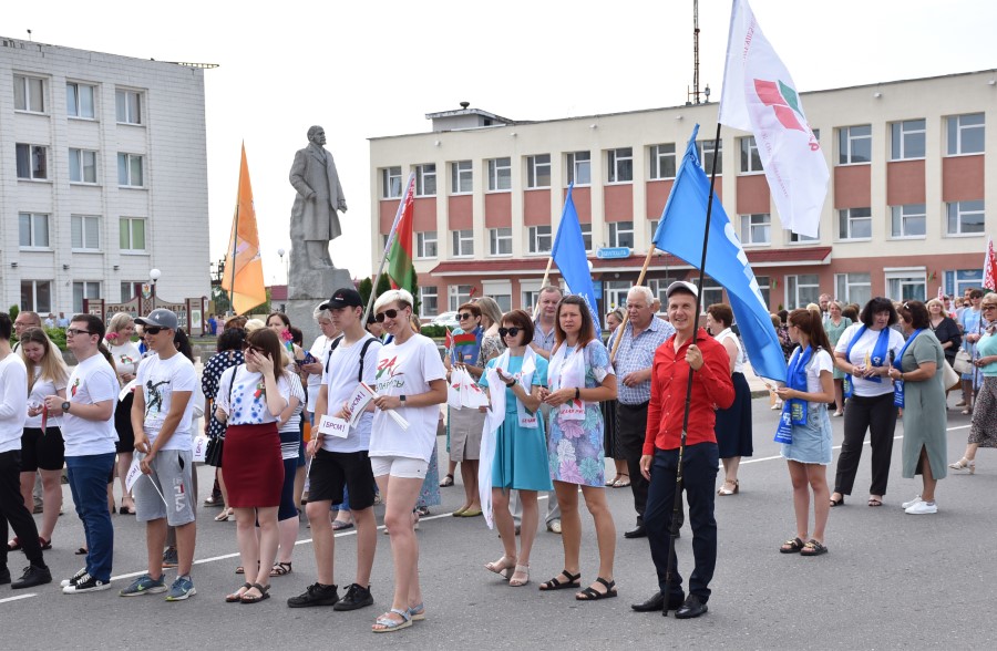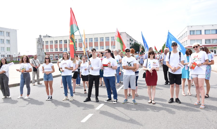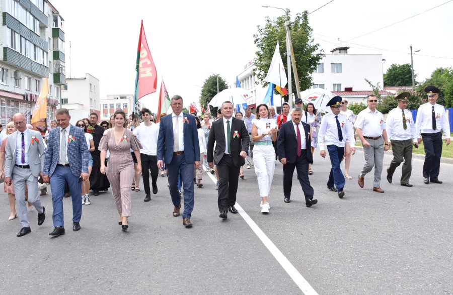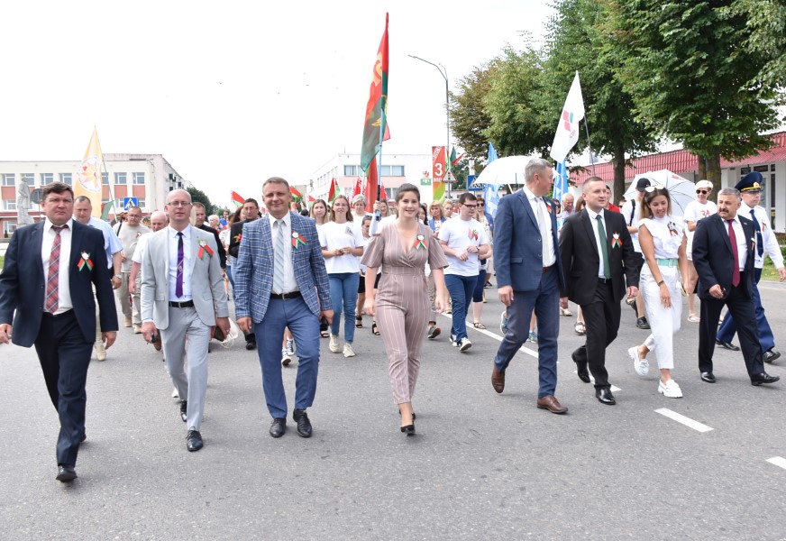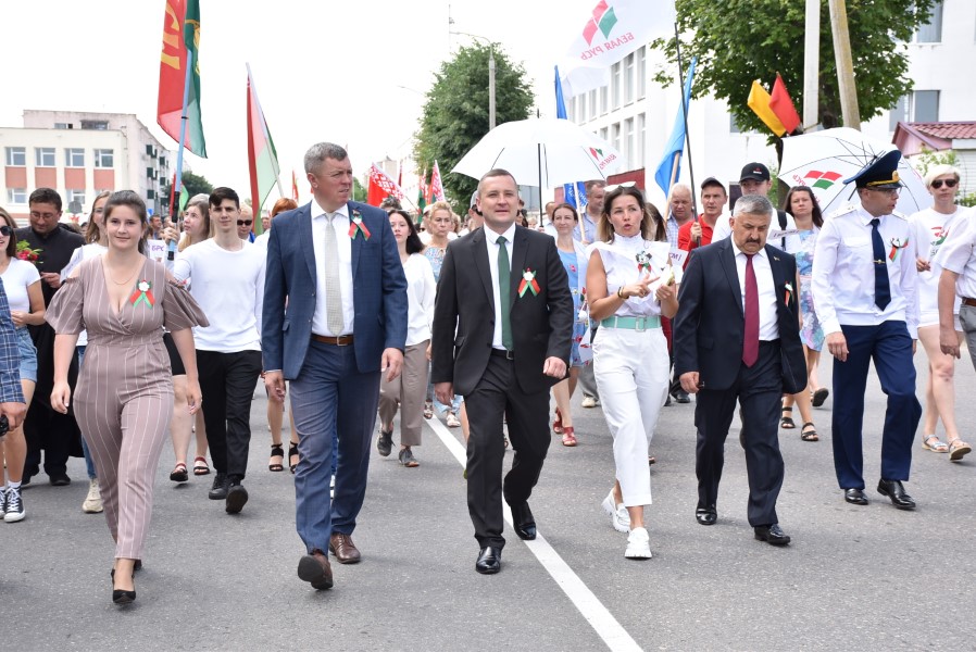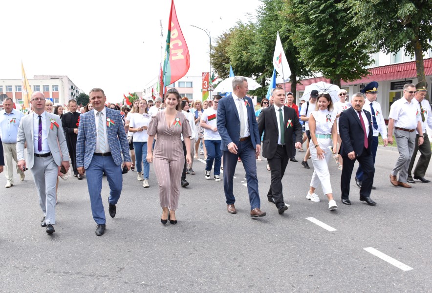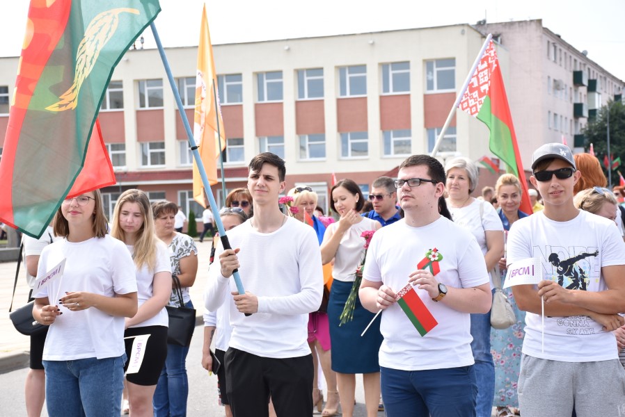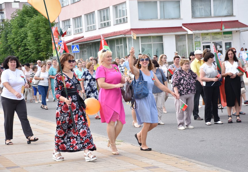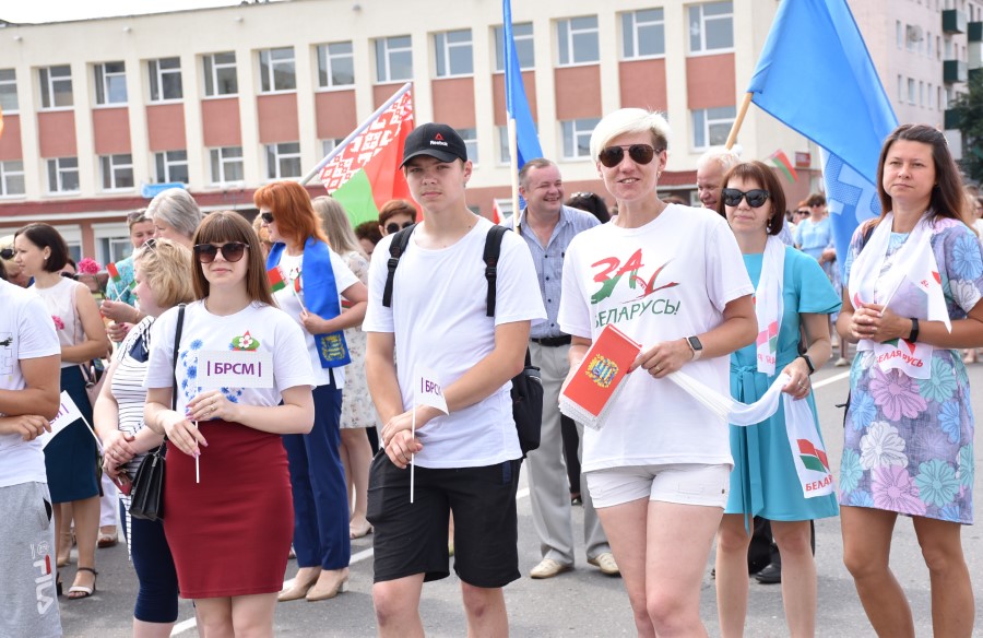 А стартавалі святочныя мерапрыемствы з урачыстага шэсця ад цэнтральнай плошчы горада да помніка загінуўшым воінам. Усе разам, моладзь, прафсаюзы, працоўныя калектывы. Усе разам крочылі ў сквер. Адчувлася адзінства нас, беларусаў, бярэзінцаў.