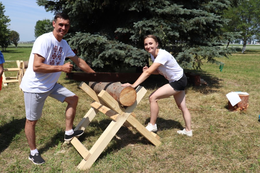 У конкурсах спаборнічалі 18 сем’яў. Разам пілавалі дровы народным інструментам “Дружба-2”, потым секлі дровы, вязалі венікі, перабіралі з завязанымі вачыма гародніну, пеляналі ляльку. І спёка ніяк не замінала спрыту і жаданню перамагчы. Асабліва захапляльным выглядаў конкурс “Дранікі на калодзе”, у якім бульбяныя аладкі пякліся ў палявых умовах. Было шмат музыкі і спеваў.