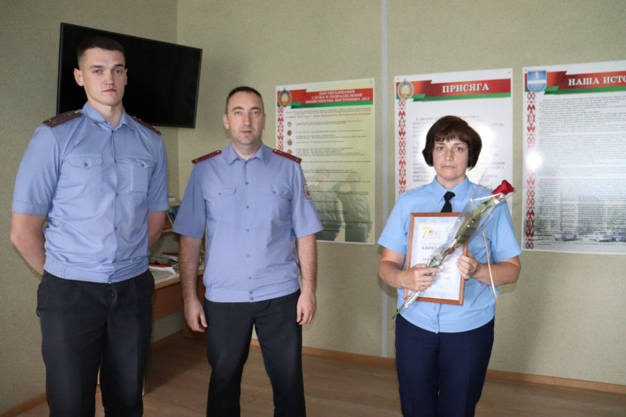 В целях комплектования вакантных должностей милиционера-кинолога группы задержания строевого подразделения милиции в данный момент проходит обучение по программе начальной подготовки специалистов кинологов младший сержант милиции Евгений Токан в УЦ «Центр повышения квалификации руководящих работников и специалистов Министерства внутренних дел Республики Беларусь», в питомнике служебных собак Минского областного управления Департамента охраны МВД Республики Беларусь, прапорщик милиции Валентин Николенко назначен милиционером-кинологом группы задержания строевого подразделения милиции.