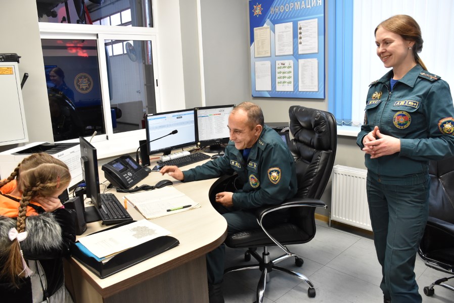 Але перш, чым прыступіць да агучвання вынікаў, работнікі РАНС арганізавалі для юных гасцей і іх бацькоў экскурсію па сваім “штабе”. Былі наведаны дзяжурная часць, гараж выратавальнікаў (у машыных можна было нават пасядзець і сфатаграфавацца!), трэнажорная зала, пакой адпачынку. Шмат цікавага даведаліся экскурсанты і пра гісторыю службы выраватання на Бярэзіншчыне.