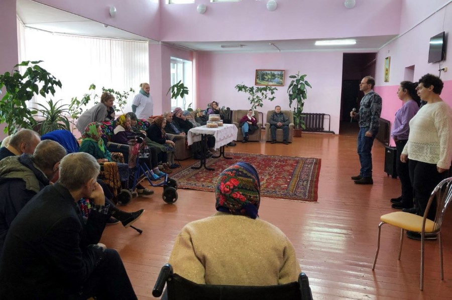 Перед пожилыми гражданами с музыкальными номерами выступили ребята из отделения дневного пребывания для инвалидов.