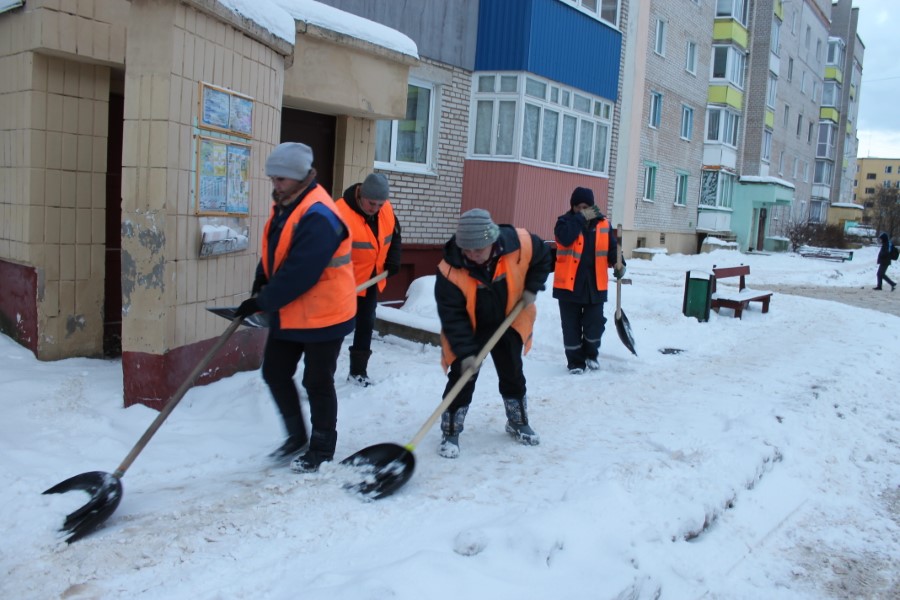 Адным з прыкладаў арганізацыі работы па ачыстцы снегу можа стаць снегапад, які адбыўся ў гэтую сераду. На ліквідацыю яго наступстваў тэхніка выйшла ў чатыры гадзіны раніцы ў чацвер пасля таго, як снегапад закончыўся і сіноптыкі паабяцалі часовае яго зацішша. Чаму з такім спазненнем, а не ў час завеі? Адказ на гэтае пытанне відавочны: ці ёсць сэнс задейнічаць тэхніку на ачыстку снегу, калі той ужо праз некалькі хвілін ізноў замяце дарогу? Акрамя дарэмных выдаткаў і страты рабочага часу гэта нічога не дае. З гэтага моманту пачалася расчыстка горада, пасля чаго тэхніка адправілася па сваіх маршрутах па раёне. Паралельна з гэтым, яшчэ задоўга да пачатку рабочага дня, з рыдлёўкамі выйшла брыгада рабочых па добраўпарадкаванні. Гэтым васьмі жанчынам належыць у першую чаргу вызваліць прыпыначныя пункты, стаянкі, пеаходныя выхады на перакрыжываннях, а таксама дваровыя тэрыторыі і ўчасткі каля пад’ездаў шматпавярховых дамоў. Зразумела, што ў час снегападаў і ў вадзіцеляў, і ў жанчын рабочы дзень завяршаецца намнога пазней, чым у кожнага з нас. І так сёлета з пачатку зімы адбываецца, лічы, штодзённа.