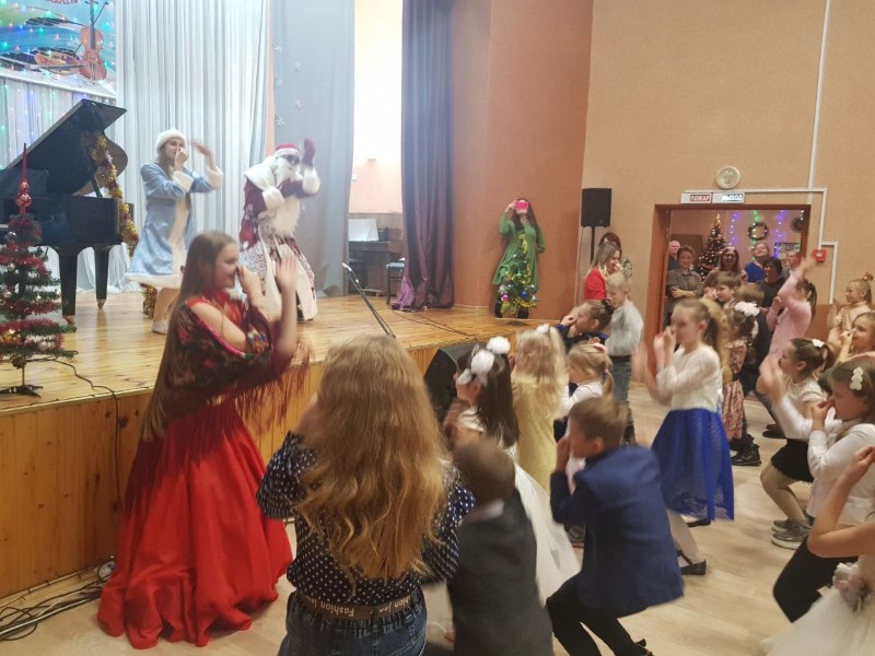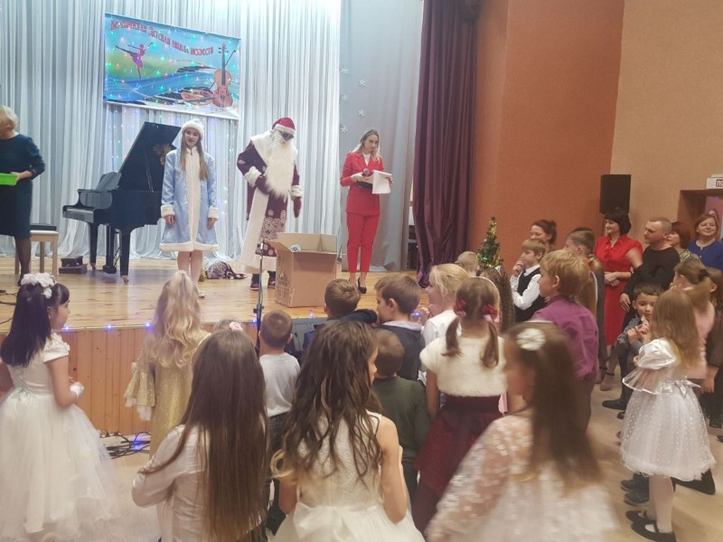 В завершении, до упаду натанцевавшись с Дедом Морозом, ребят ждали традиционные подарки: магнит с эмблемой ДШИ и сладости.
