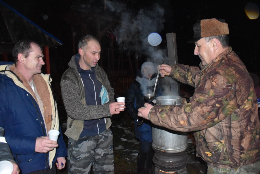 Як звычайна, непадалёк, на вогнішчы, закіпала вада для чаявання. Гарачай гарбатай частаваў усіх Мікалай Дзялендзік.