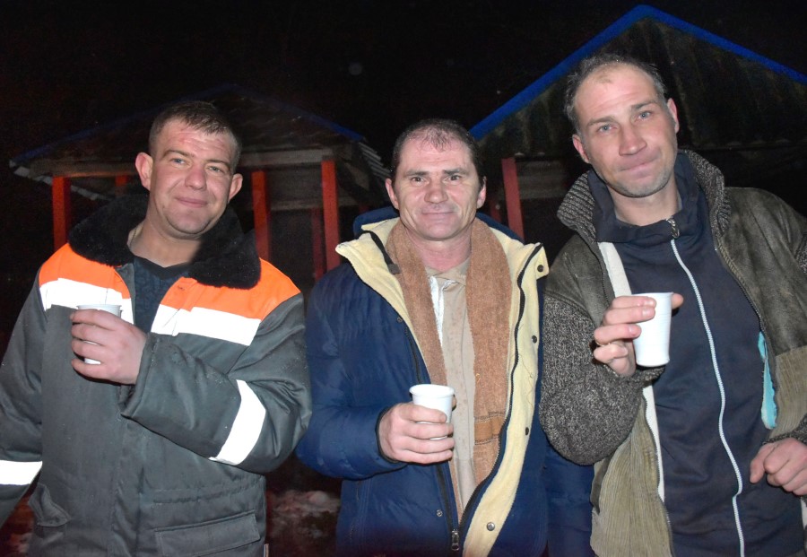 З вёскі Дмітравічы, каб далучыцца да святкавання і акунуцца ў купелі, прыехалі і сябры – Андрэй Леута, Іван Сіняк, Аляксандр Базылеў.