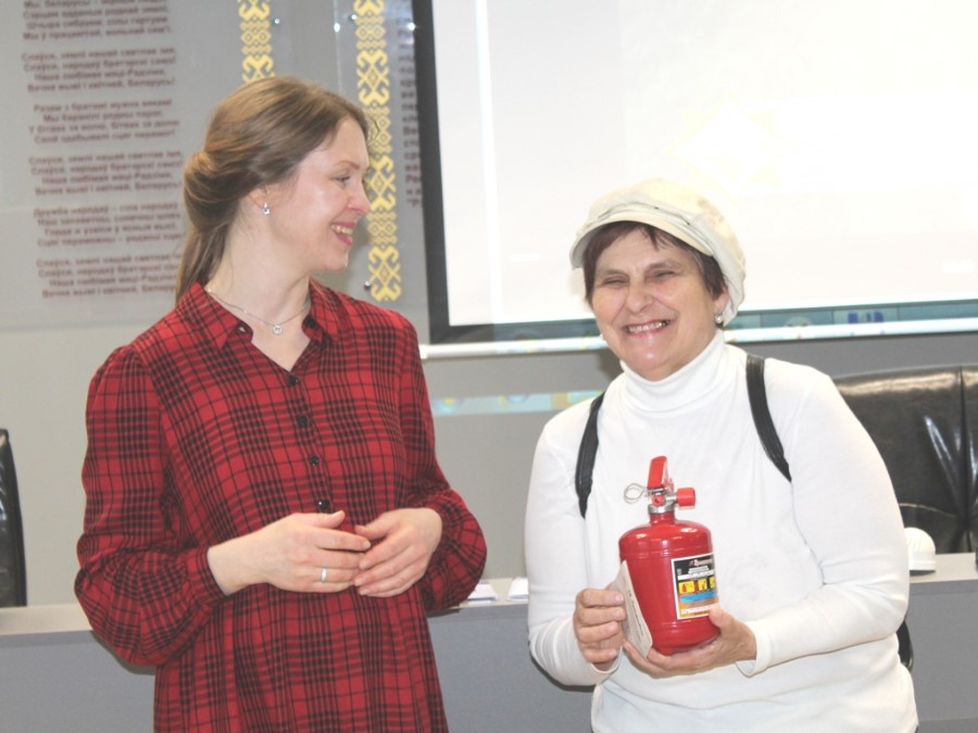 Не зусім спрыяльнае надвор’е ніякім чынам не змяніла нашы планы, і ўсе жадаючыя ў належны час прыйшлі ў госці да ратавальнікаў. Паўтары гадзіны праляцелі незаўважна: разам з інспектарам прапаганды райаддзела Вольгай Ермаковай удзельнікі акцыі паспелі і пагутарыць на актуальныя тэмы ўласнай бяспекі, і “патушыць пажар” на патэльні, і расказаць правілы ўсталявання печы і бяспечных умоў яе эксплуатацыі. А яшчэ – патэлефанаваць у службу ратавання, паглядзець прафілактычны фільм і нават выйграць падчас віктарыны вогнетушыцель і аўтаномны пажарны апавяшчальнік.
