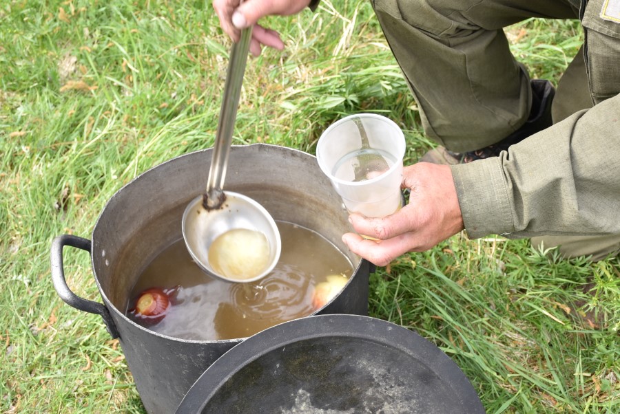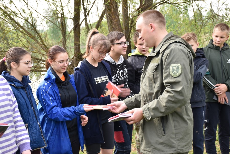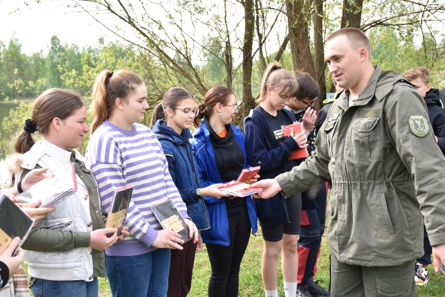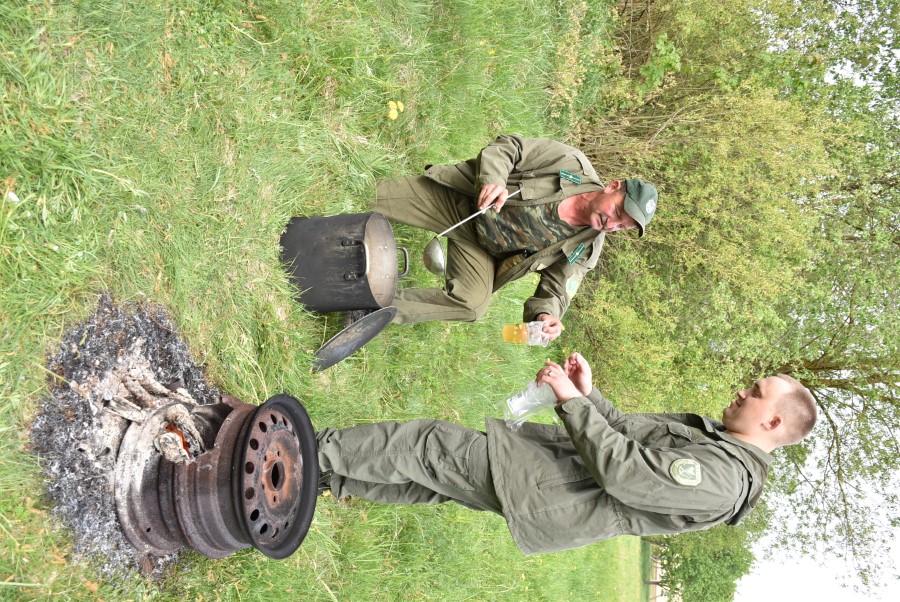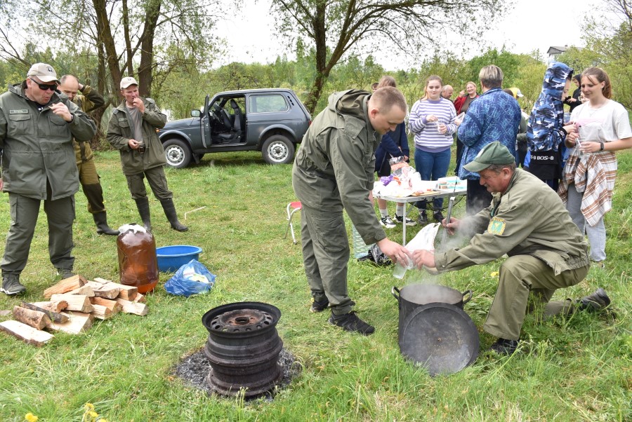 Напрыканцы акцыі Генадзь Стральцоў уручыў сваім юным памочнікам на памяць аб мерапрыемстве штодзённікі, а егер Міхаіл Яблонскі пачаставаў усіх прыгатаванай наварыстай юшкай.