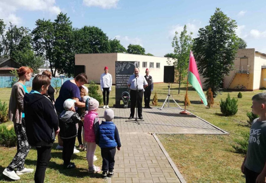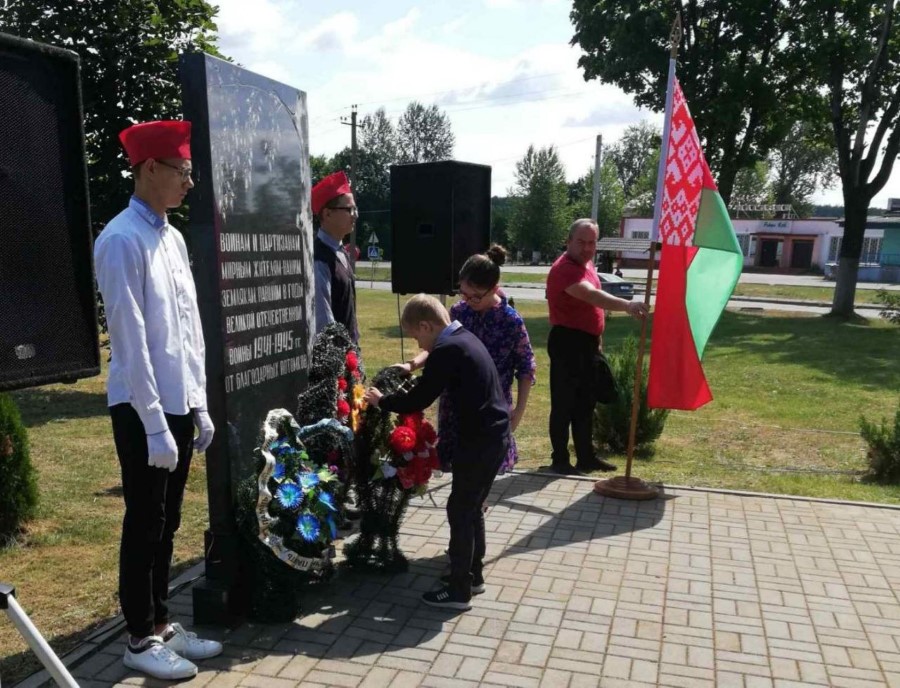 Работники учреждений образования, сельского хозяйства, лесничества, жители и гости приходят возложить цветы и отдать дань памяти людям которые завоевали и сохранили мир на нашей земле.