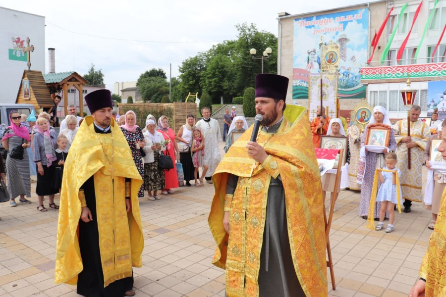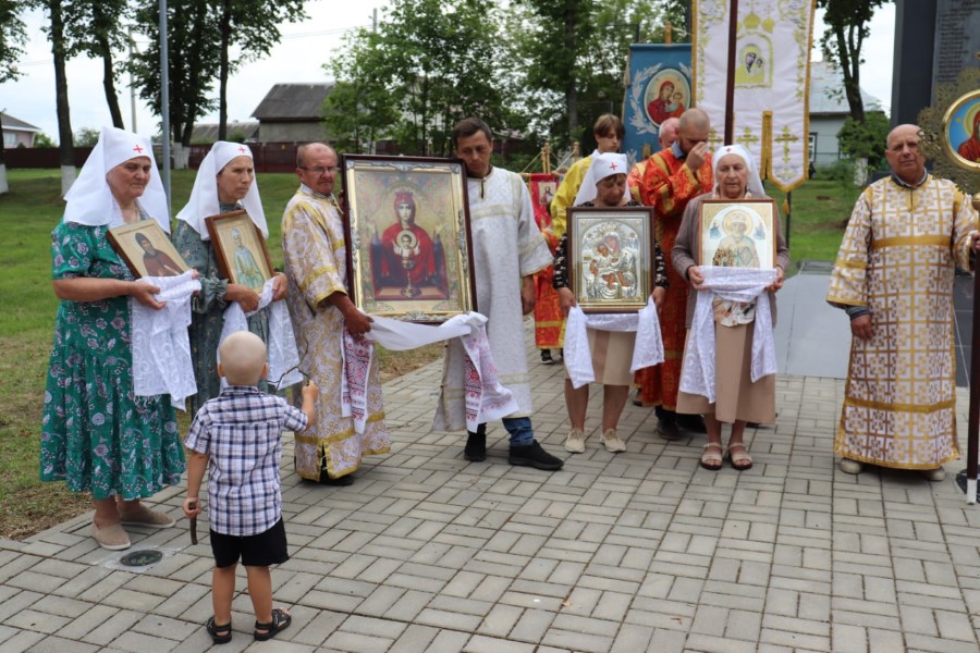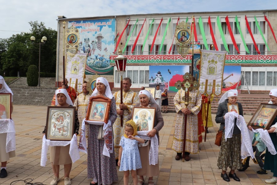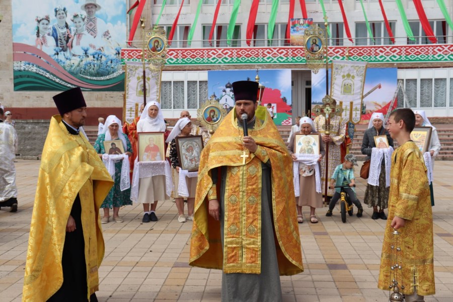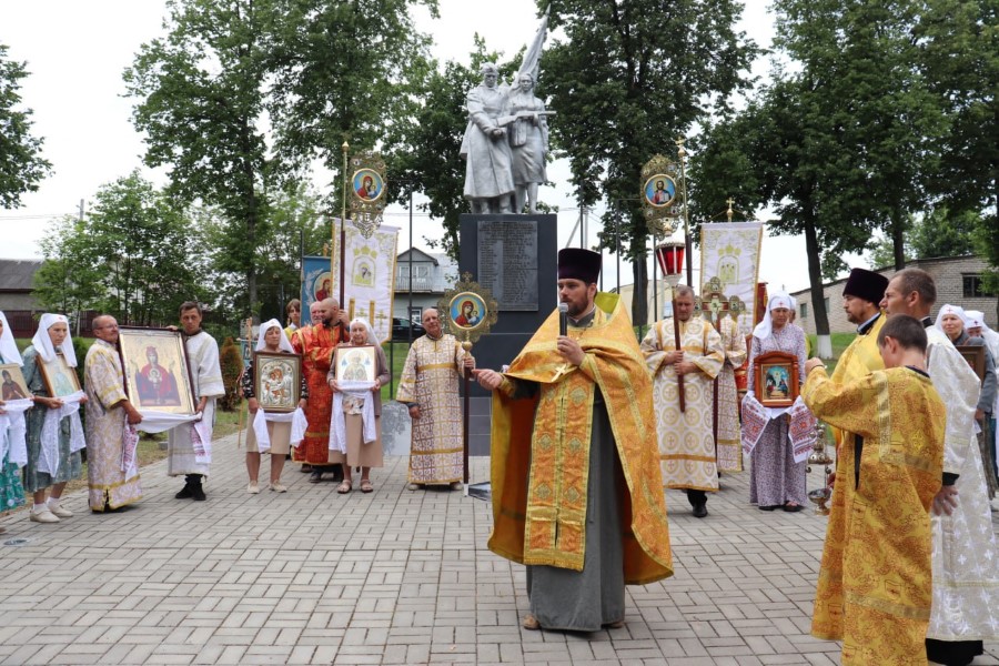 Участники Крестного хода провели молебны на городской площади и в городском сквере возле памятника воинам и партизанам, павшим в годы Великой Отечественной войны.