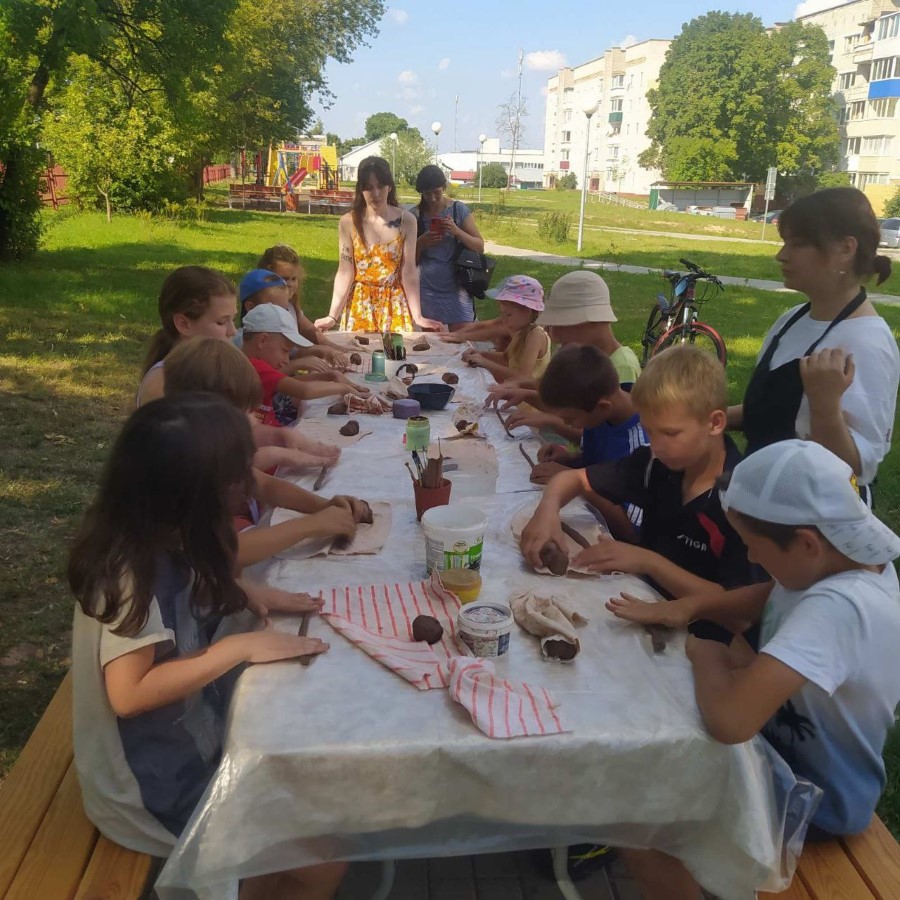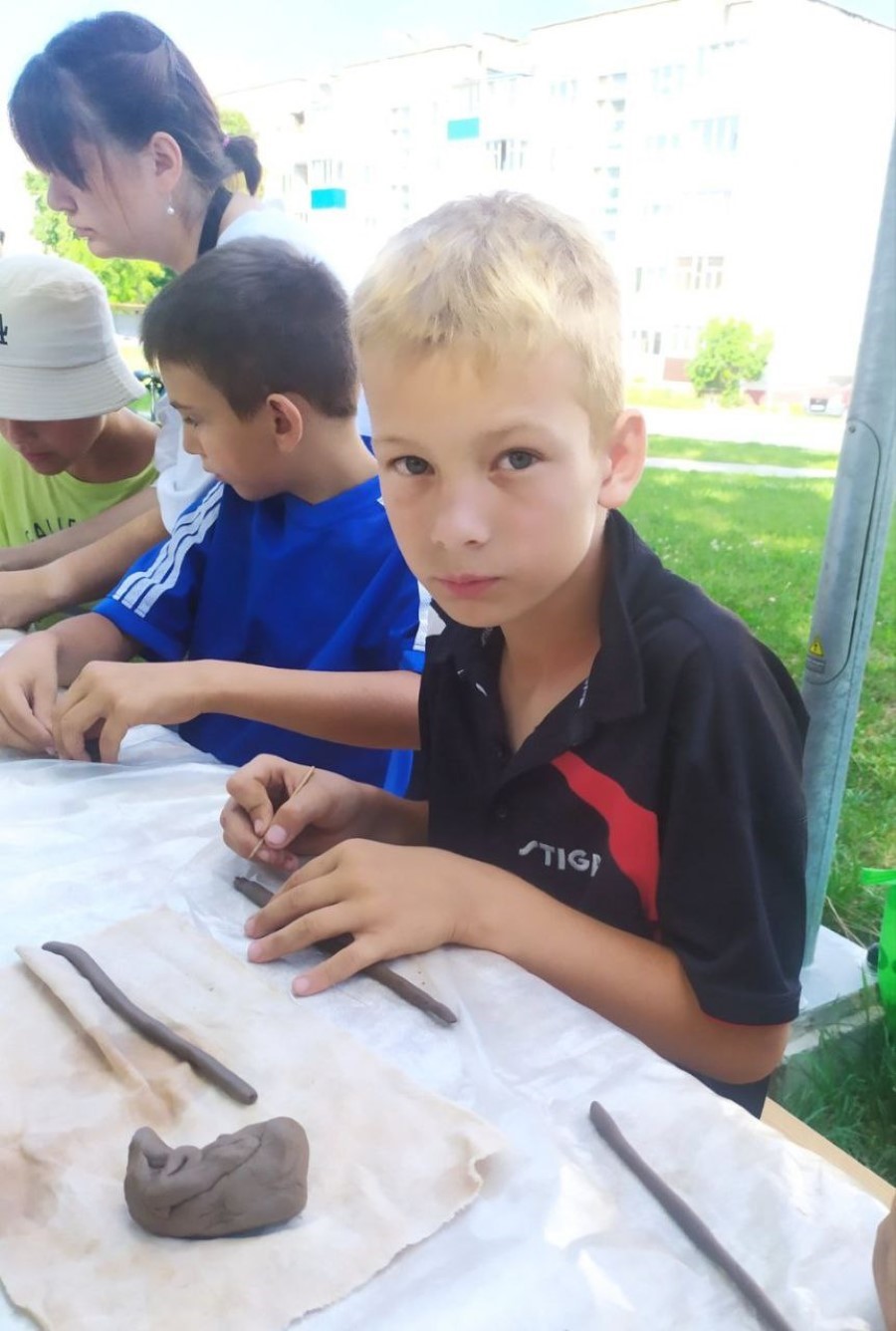 Вчера "доставили" лепку из глины во дворы многоэтажек по улице Октябрьской города. Вместе учились лепить корзинку, и в дружной компании не могло не получиться. Каждый мог похвалиться своей работой.