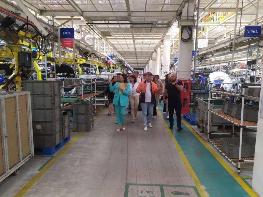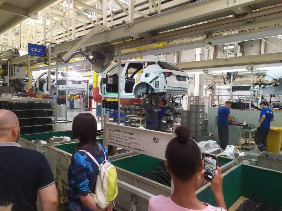 Далее по маршруту состоялось посещение СЗАО «БелДЖИ», журналисты воочию увидели конвейерную сборку автомобилей «Джили», и это на самом деле впечатляющее зрелище. Не каждый день посторонним разрешают оказаться в таком месте. Можно было посидеть за рулём топовых моделей, так сказать, ощутить атмосферу автомобилестроения прямо изнутри.