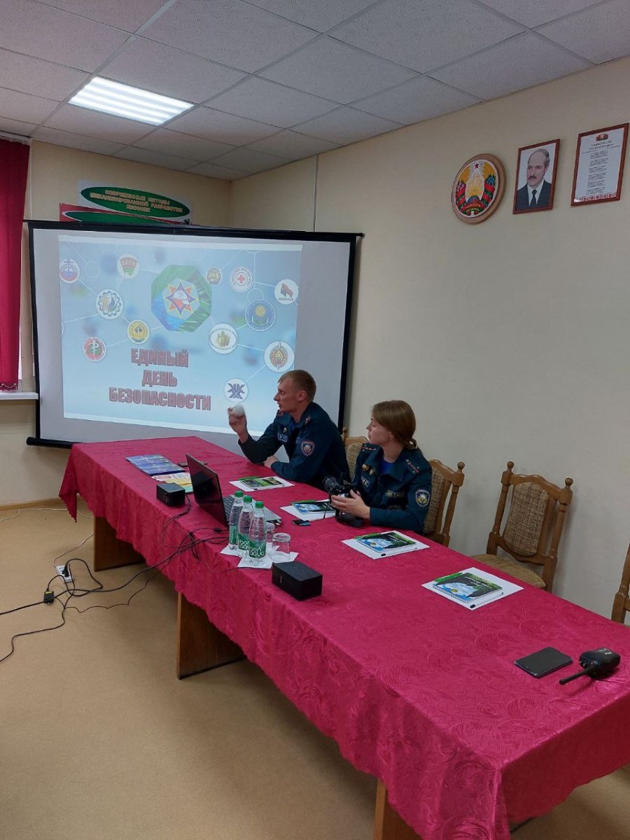 Тема: предупреждение пожаров и иных чрезвычайных ситуаций на промышленных предприятиях и в частном секторе. В рамках Единого дня безопасности проводятся беседы с присутствующими, показ фильмов и учебная эвакуация. Единые дни безопасности проводятся во всех районах Минской области.
