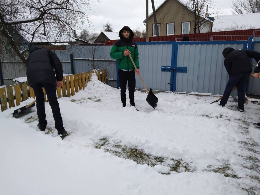С началом обильных снегопадов не остались без внимания пожилые жители города, к ним на помощь с очисткой снега спешит молодежь, члены БРСМ. Вот и вчера ученики средней школы №2, активисты БРСМ, пришли к жительнице города, ветерану Великой Отечественной войны Софии Стасевич и убрали снег во дворе дома.