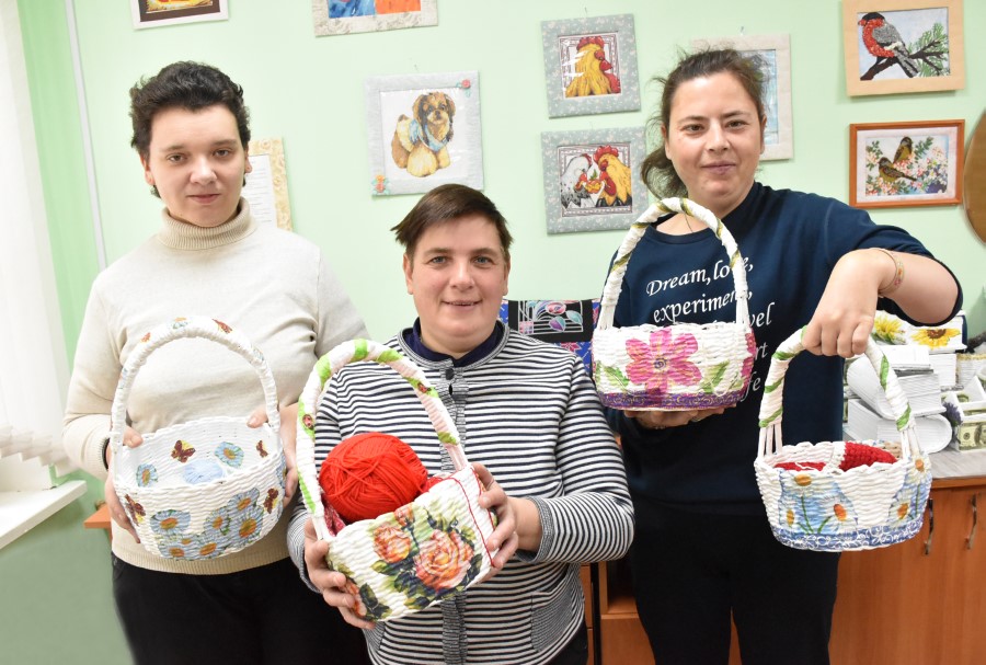 Ирина Федоринчик, Марина Король, Вероника Заблоцкая со своими изделиями