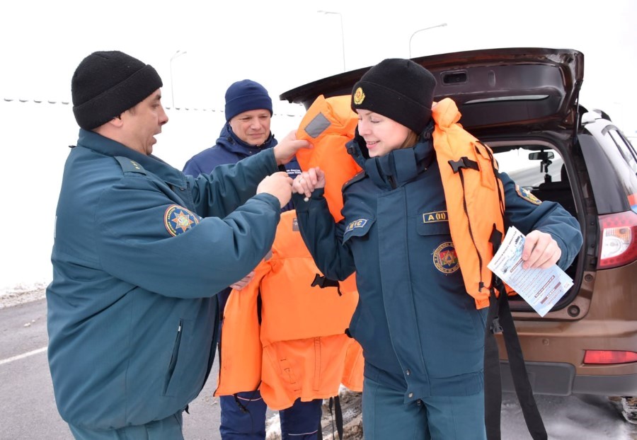 Апрануўшыся ў выратавальныя камізэлькі і ўзяўшы памяткі з рэкамендацыямі, што рабіць у экстраных сітуацыях, яны накіраваліся спачатку да аматараў рыбнай лоўлі на вадаёме аграгарадка Паплавы, потым - на рацэ Бярэзіна.