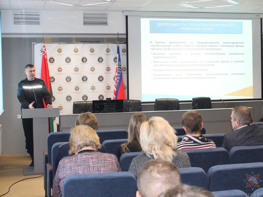 На мероприятии выступил заместитель начальника райотдела по чрезвычайным ситуациям Александр Лагун. Демонстрируя обучающую презентацию, он обозначил основные моменты, которые необходимо учитывать при профилактической работе, какие существуют алгоритмы информирования, сроки реагирования согласно законодательству. Совместная работа, направленная на качество, – залог уменьшения числа различных происшествий и правонарушений, а значит, и минимизации гибели людей от внешних причин.