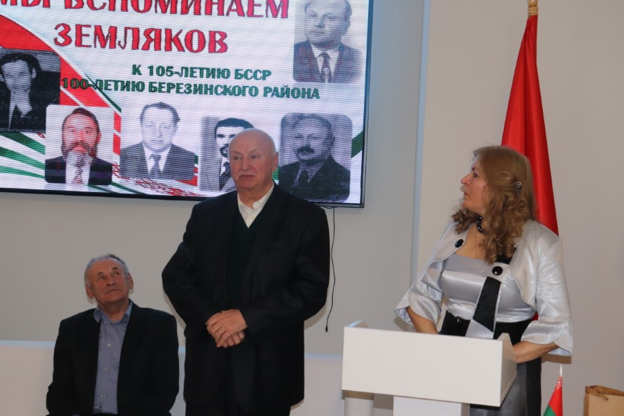 Ведущая мероприятия Тамара Круталевич познакомила присутствующих с биографиями отдельных представителей Березинщины, которые внесли значительный вклад в ее расцвет и развитие, ознаменовали себя славными делами и трудовыми подвигами. Среди этих людей – представители органов государственной власти Александр Антипенко и Иван Реут, представители сельскохозяйственной отрасли Гвидон Реут и Анна Дюк, педагоги Пётр Прибыткин и Сергей Игнатович, врач Михаил Гермалид, руководитель автобазы №22 Семен Фридлянд, работники культуры Геннадий Ефремов и Анатолий Хващинский.