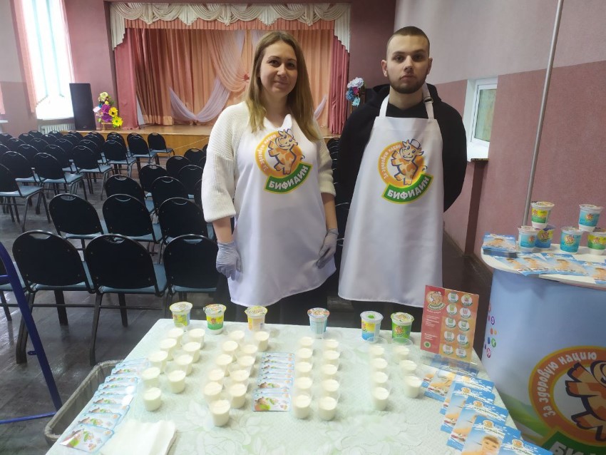 На участке для голосования в гимназии свою продукцию для дегустации представило ООО "Биомолпром".