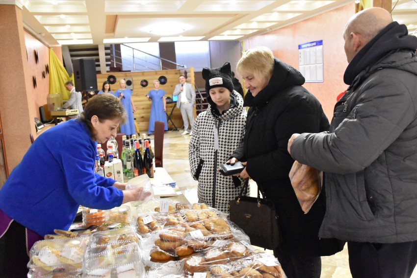 Здесь свою продукцию презентовал производственный участок филиала «Здравушка-милк» ОАО «Слуцкий сыродельный комбинат». Как видите, набор сыров у предприятия весьма широкий, а его продукция придется по душе любому гурману. Не менее оживленно было и возле торговой точки, организованной Березинским филиалом Минского облпотребсоюза. Здесь в ход шла в основном собственная продукция хлебопеков – булочки, сдоба, пирожки… Было что купить кроме них.