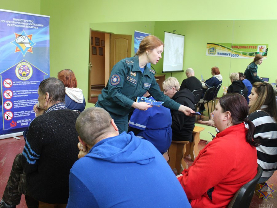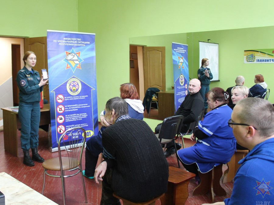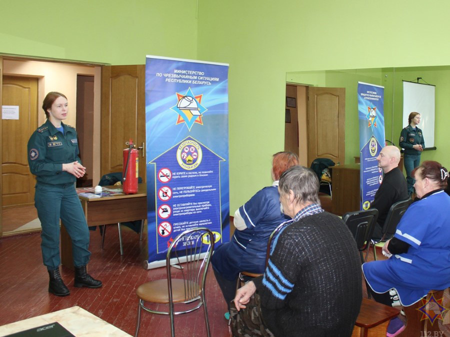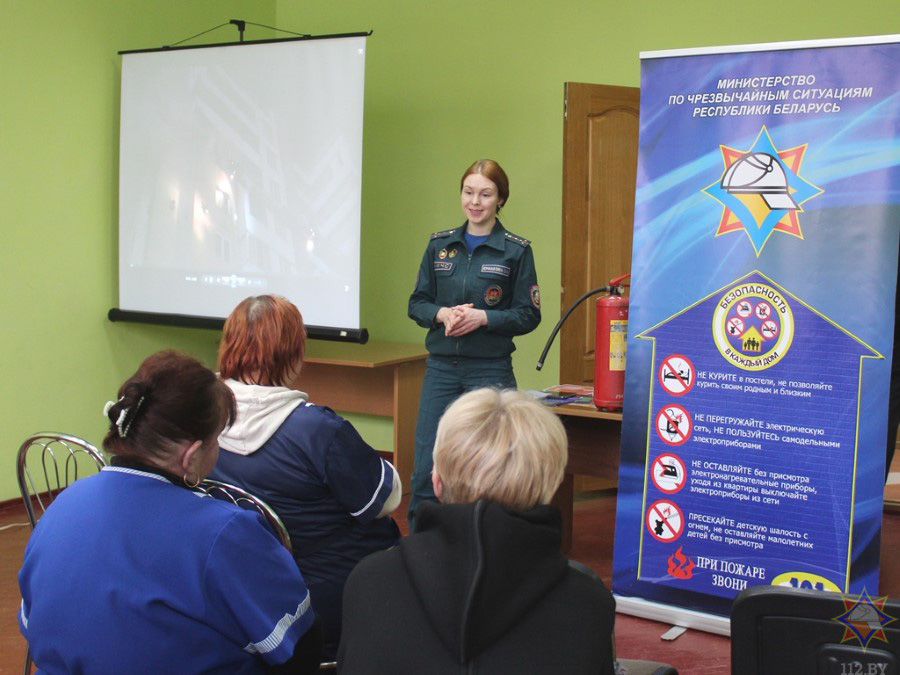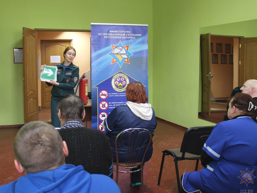 Фільм «Бяспека – у кожны дом» расказаў удзельнікам акцыі пра асноўныя правілы, абавязковыя для выканання кожным гаспадаром, што дбае пра сваю бяспеку. Дырэктар установы Сяргей Вальчэўскі нагадаў сваім работнікам прынцып прывядзення ў работу вогнетушыцеля. Таксама мы пагаварылі пра знакі пажарнай эвакуацыі, мабільнае прыкладанне «Дапамога побач», Вольга Ермакова адказала на пытанні прысутных.