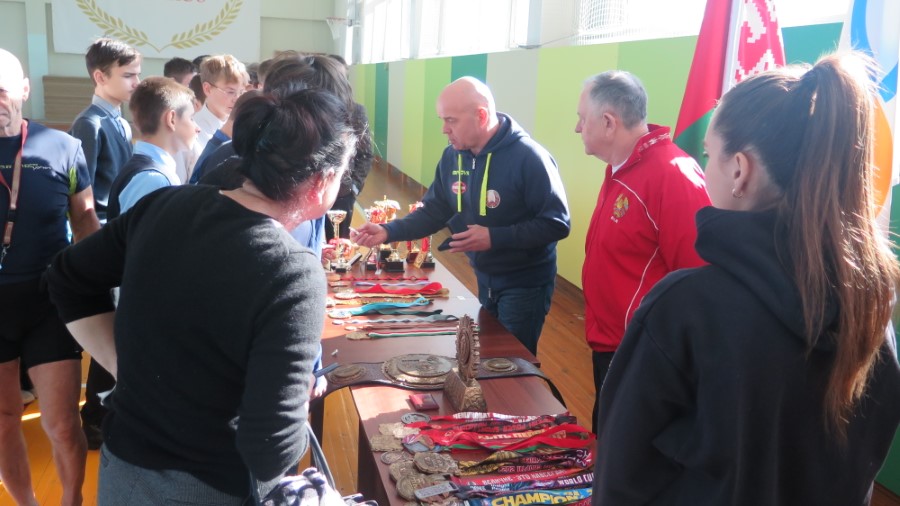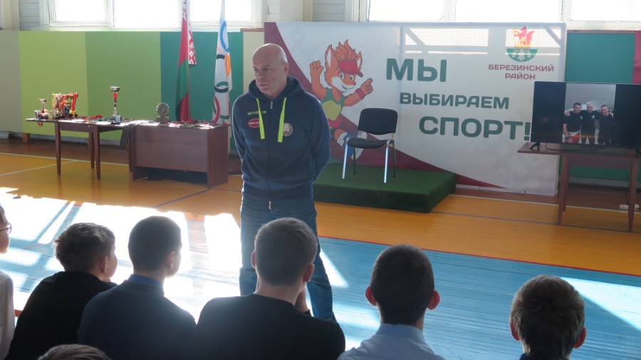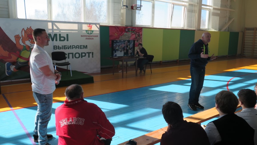 В рамках открытого диалога «Сильная Беларусь - здоровая нация», в Березинскую спортшколу заглянули представители Национальной ассоциации пауэрлифтинга Республики Беларусь Александр Янюк, Павел Клындюк и спортсмен, о котором слышал каждый белорус, хоть однажды прикасавшийся к гире или штанге – Вячеслав Хоронеко. Чемпионы привезли многочисленные награды, которые после разговора могли подержать в руках присутствующие зрители-школьники.