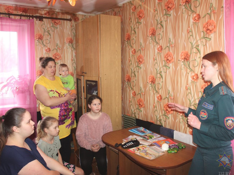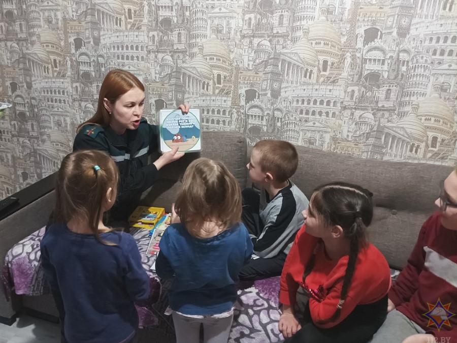 Інспектар прапаганды райаддзела па надзвычайных сітуацыях Вольга Ермакова наведала сем’і Куксік і Сакавых. З дзецьмі інспектар правяла прафілактычную гутарку, нагадала пра бяспеку падчас вясенніх канікалаў. Разам мы «тэлефанавалі» ў службу ратавання, адказвалі на пытанні з картак, адшуквалі парвільныя адказы падчас віктарыны. Дарослым інспектар расказала пра неабходнасць пільна сачыць за заняткамі дзяцей, таму што ўсплеск выпадкаў траўміравання дзяцей прыходзіцца менавіта на канікулярны час, калі малыя выпадаюць з поля зроку дарослых.