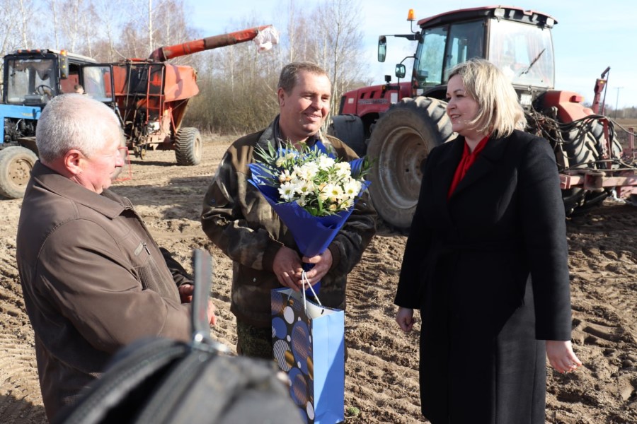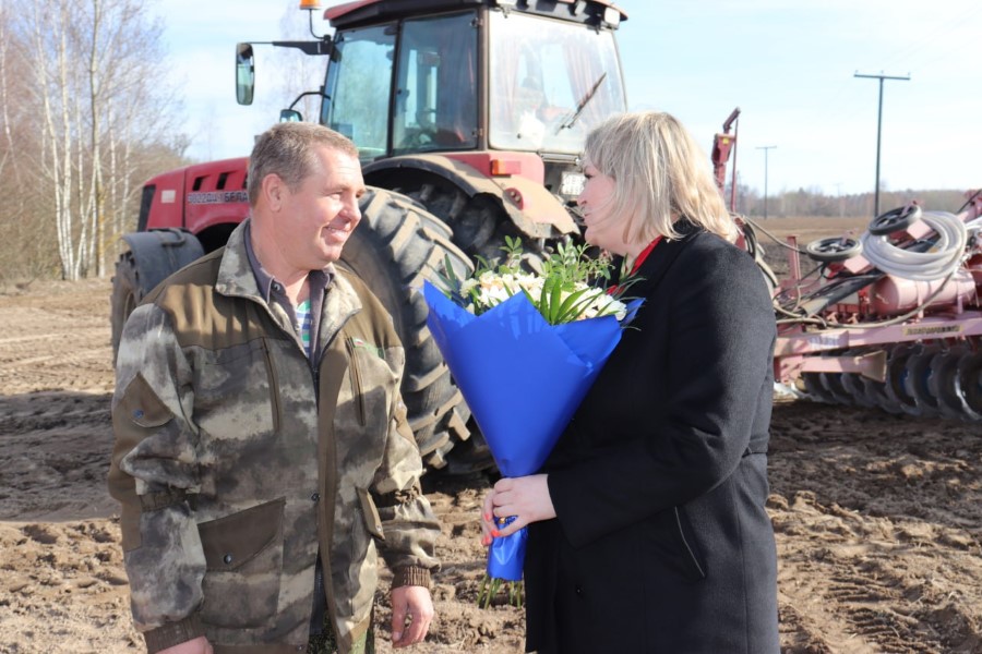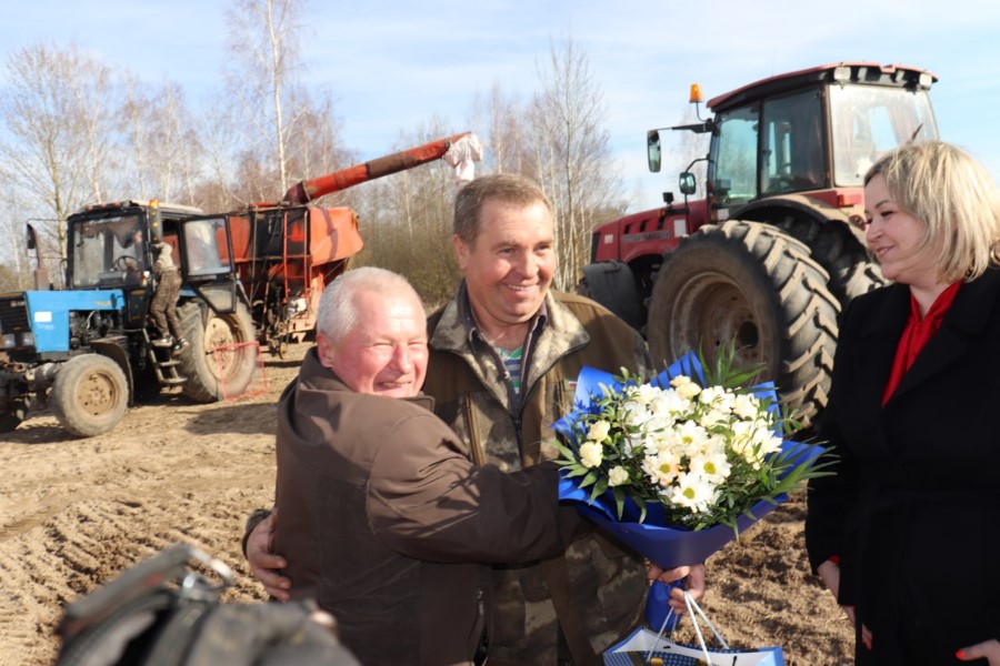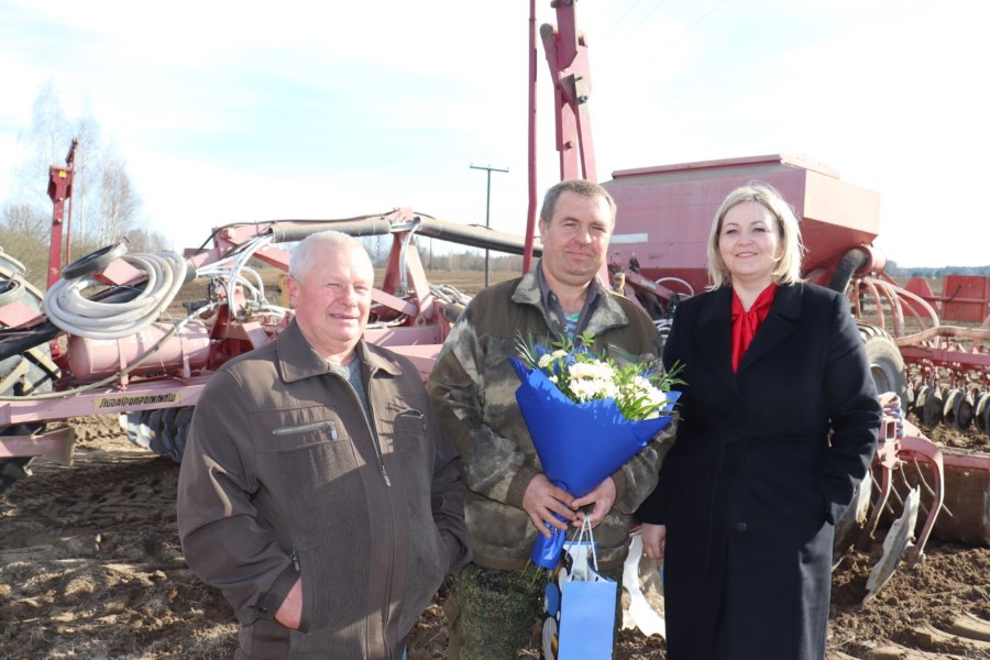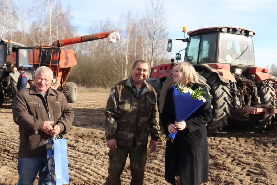 По случаю юбилея, к Сергею Логовскому прямо на поле с подарком, цветами и теплыми словами поздравлений прибыли председатель райкома профсоюза работников АПК Марина Ковзунович и главный агроном хозяйства Иван Тарасеня. Как видим, и в трудовых буднях не забыли про именинника ни райком профсоюза, ни администрация, ни профсоюзная организация сельхозпредприятия.