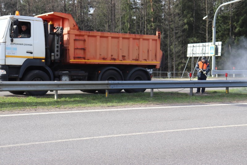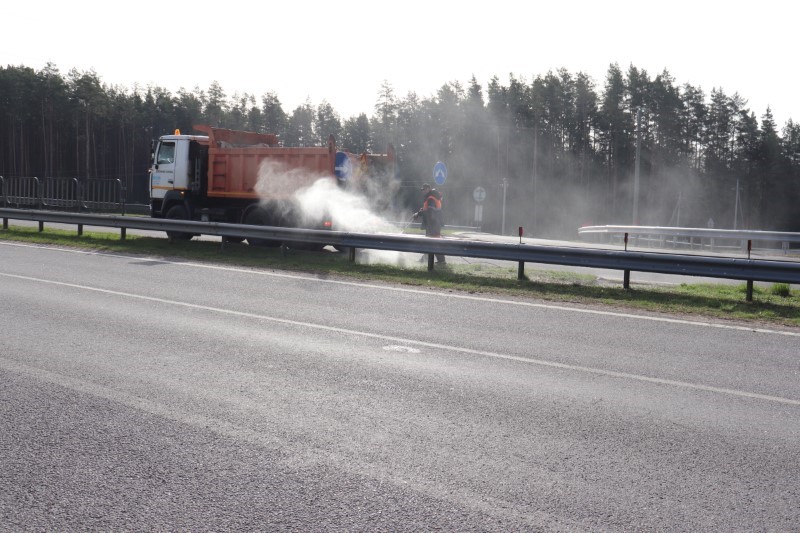 Активно ведут работы и их коллеги из ДЭУ-6. Еще на прошлой неделе они приступили к укладке асфальта на участке дороги между Дмитровичами и Белавичами. Хватает у них забот и по другим адресам закрепленных за ними дорог и трассы Минск-Могилев. Выглядеть эта автомагистраль должна надлежащим образом, поэтому даже такой вид работ, как мойка заграждений здесь вполне уместен. Тем более, что за зиму они успели изрядно пострадать от грязи.
