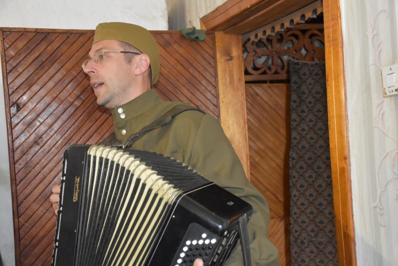 А для того, чтобы и в канун праздника у этих людей было бодрое и приподнятое настроение, каждому из них была исполнена песня под аккомпанемент задушевной гармони.