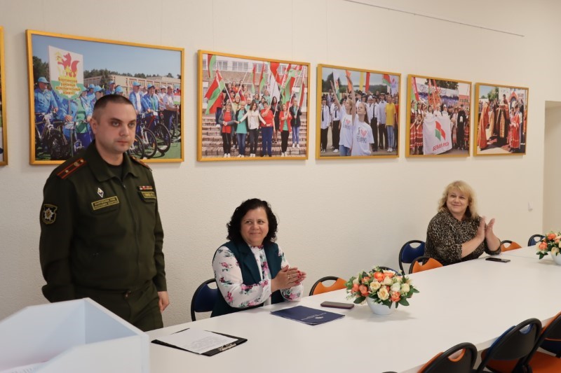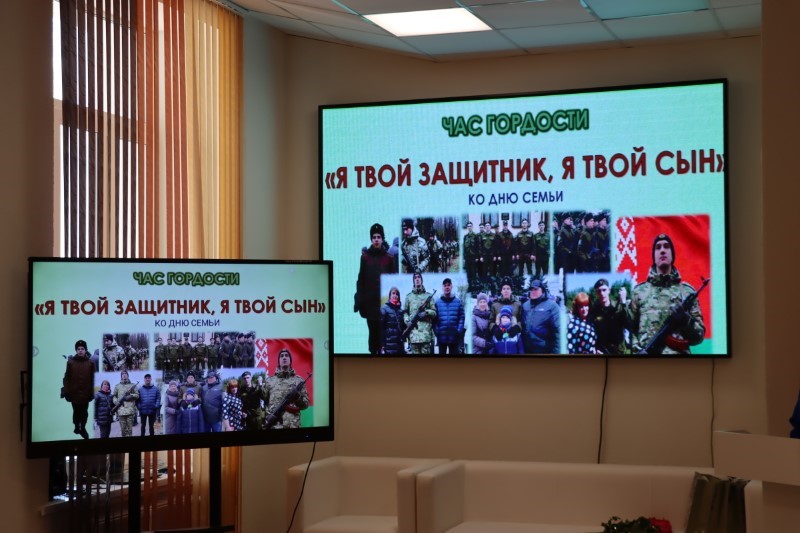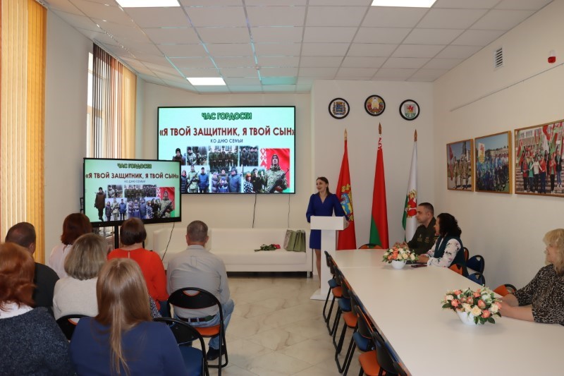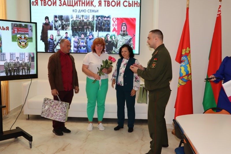 Сегодня слова благодарности прозвучали для Андрея и Натальи Бабинович, их сын Илья уже целый год и один месяц служит в отдельном батальоне охраны и обслуживания гвардейского объединенного учебного центра в Борисове (Печи); Алексея и Ольги Булич, их сын Дмитрий 7 месяцев служит во внутренних войсках; Дмитрия и Ирины Москальковых, их сын Тимофей уже 6 месяцев служит в части военно-воздушных сил и войск противовоздушной обороны.