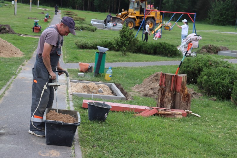 Становится более ухоженной и располагающей к себе и территория зоны отдыха у городского озера. Здесь пока что ведутся подготовительные работы, а вскоре будут установлены уютные скамейки для отдыха горожан.