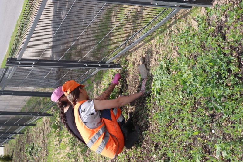 Еще один адрес благоустройства – новый жилой дом по улице Октябрьской. Здесь коммунальники благоустраивают прилегающую территорию клумб от сорной растительности, которая начала пробиваться из земли.