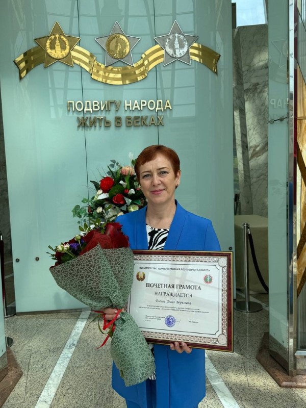 В преддверии Дня медицинского работника, за многолетнюю плодотворную работу, высокий профессионализм, значительный личный вклад в развитие и совершенствование системы здравоохранения, Почетной грамотой Министерства здравоохранения Республики Беларусь награждена врач общей практики Березинской ЦРБ ЕЛОЕВА Ольга Борисовна.